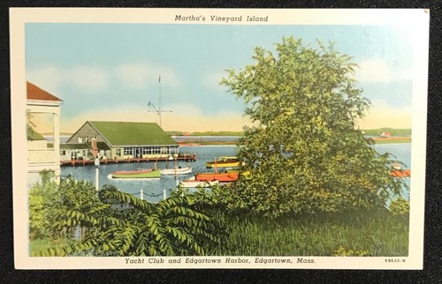 Massachusetts Martha S Vineyard Island Yacht Club Edgartown Harbor Linen C1940 Ebay