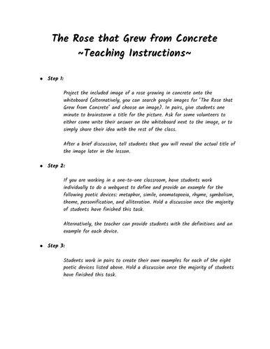 Tupac Poem The Rose That Grew From Concrete Complete Lesson Materials